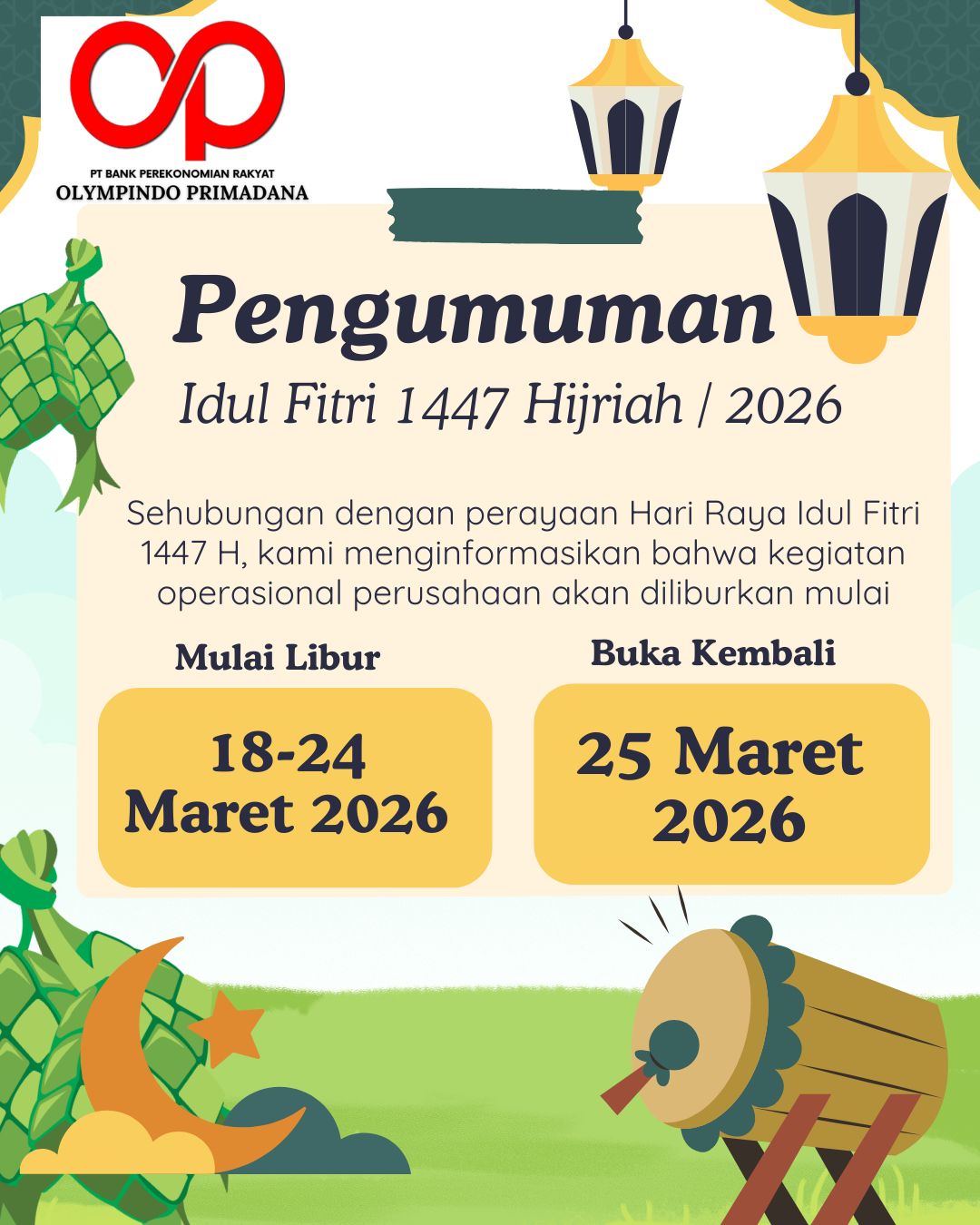 PT BPR OLYMPINDO PRIMADANA sudah berizin dan diawasi oleh Otoritas Jasa Keuangan